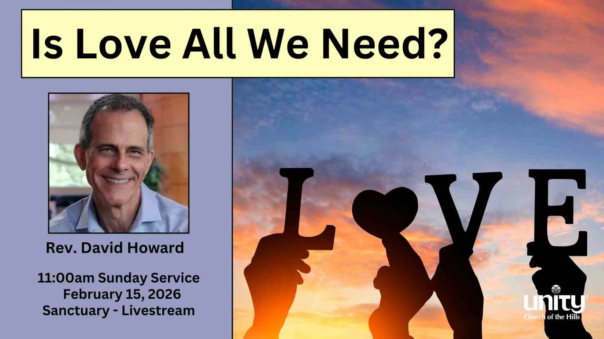 Unity Church of the Hills is an inclusive spiritual community in Austin, TX. We come together to explore truth, grow in love, and serve the world. Whether you’re brand new or a lifelong seeker, you are welcome here.